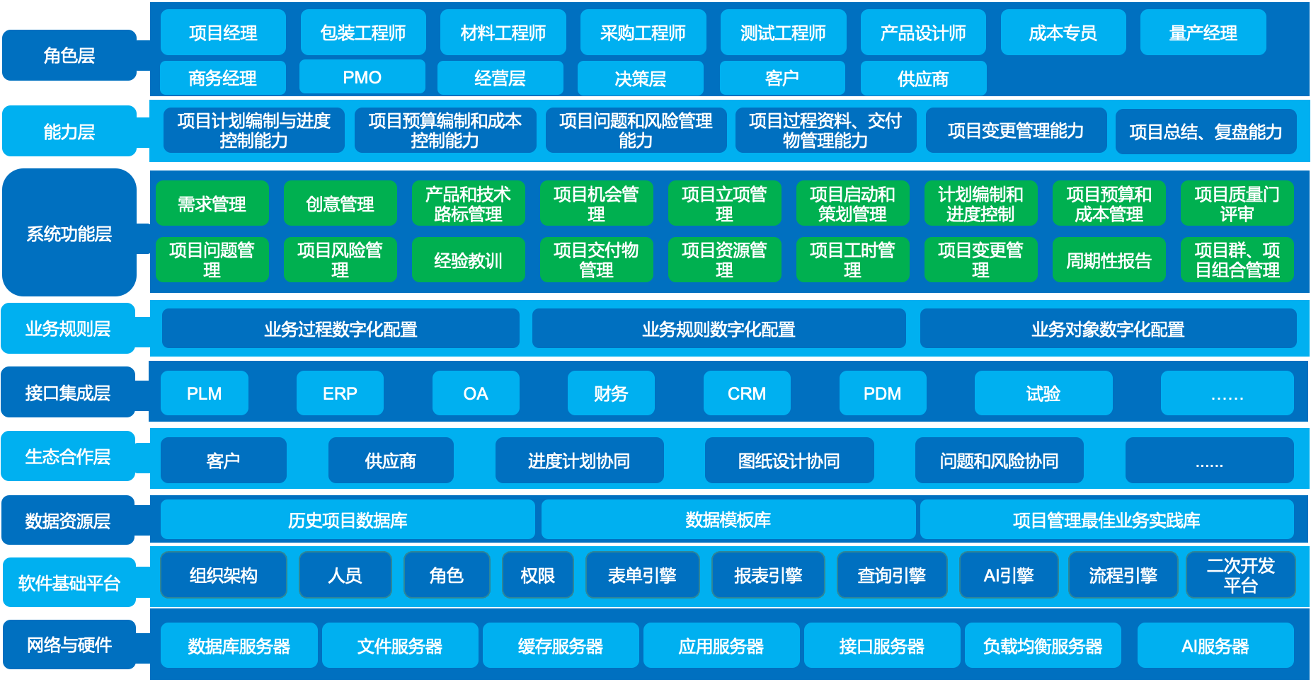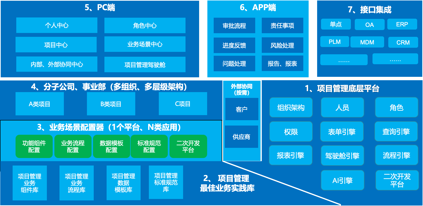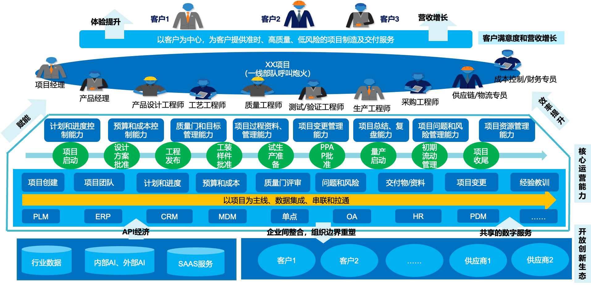 一个项目全过程、全要素管理的数据集成平台; 一个连接和赋能项目参与方的生态合作平台,实现汽车零部件企业项目管理的组织在线、沟通在线、协同在线、业务在线和生态在线。